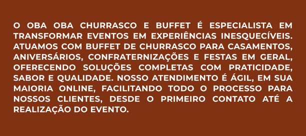 Atendemos casamentos, aniversários, confraternizações, eventos corporativos e festas em geral, adaptando o cardápio conforme a necessidade de cada cliente.